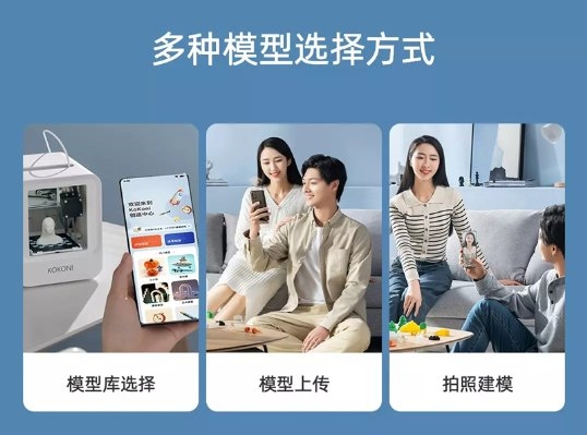 KOKONI魔芯3D打印機究竟有什么獨特的吸引力,得到這么多消費者的認可?首先是其零門檻的極簡操作點燃了消費者的熱情,操作簡單易學,不需要有專業的建模知識,只需下載專用的手機APP,拍照或者上傳照片,就可以生成擬真三維模型進行打印,就連孩子都可以輕松操作。