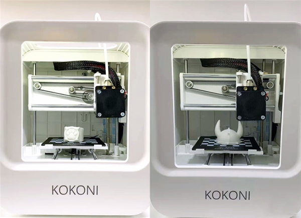 魔芯KOKONI3D打印機打破技術壁壘,注重消費者體驗。開機通電即打、免調平、免組裝、料盒自動配置、噴嘴出絲順暢等等諸多特點,也讓它的易用性大大提升。