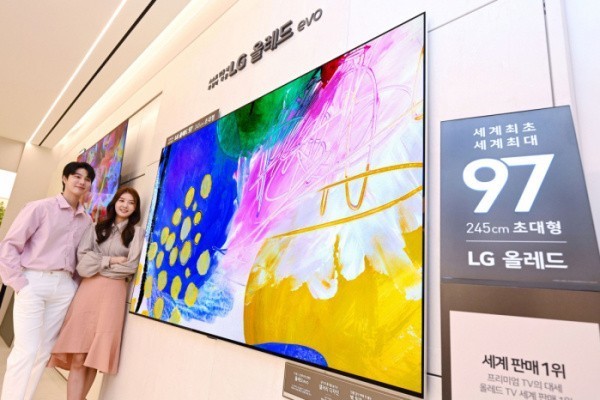 ▲LG電子機型在首爾江南區(qū)LG Best Shop江南總部展出97英寸OLED EVO Gallery Edition。(由 LG 電子提供)