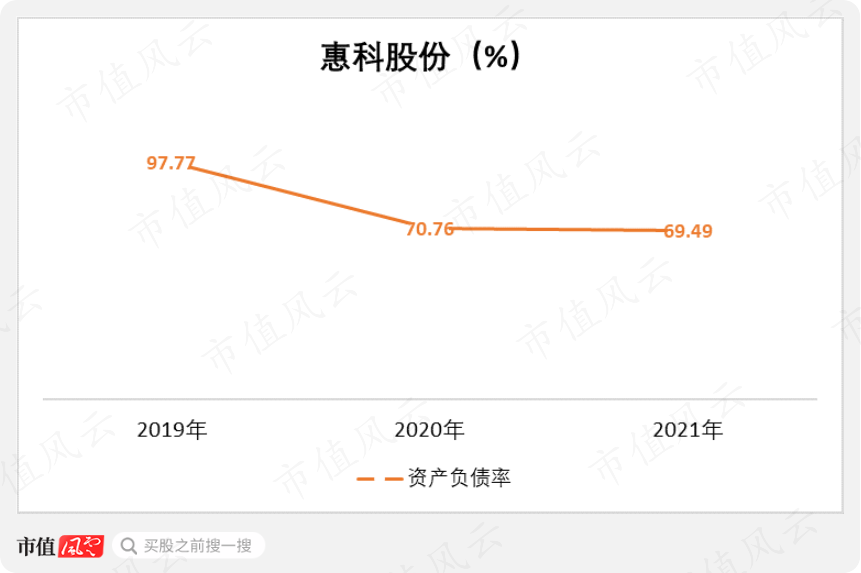 這些股權(quán)融資,以及惠科股份自身經(jīng)營活動現(xiàn)金流的好轉(zhuǎn),使得其資產(chǎn)負(fù)債率從2019年末的高達(dá)97.77%,降至2021年末的69.49%。