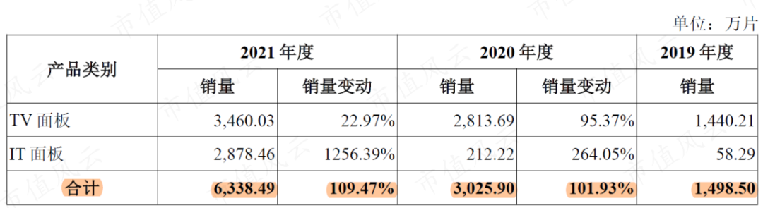 隨著面板廠產(chǎn)能爬坡,惠科股份的面板產(chǎn)量也快速增長,并成功趕上2021年的高景氣周期,實現(xiàn)銷量大增,也為當(dāng)年的業(yè)績暴增貢獻(xiàn)了主觀上最大的努力。