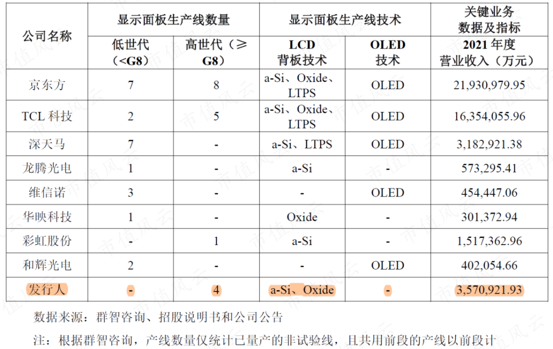 目前,國內(nèi)僅有京東方、TCL科技(即華星光電)、彩虹股份(600707)、惠科股份四家公司,擁有高世代顯示面板產(chǎn)線。