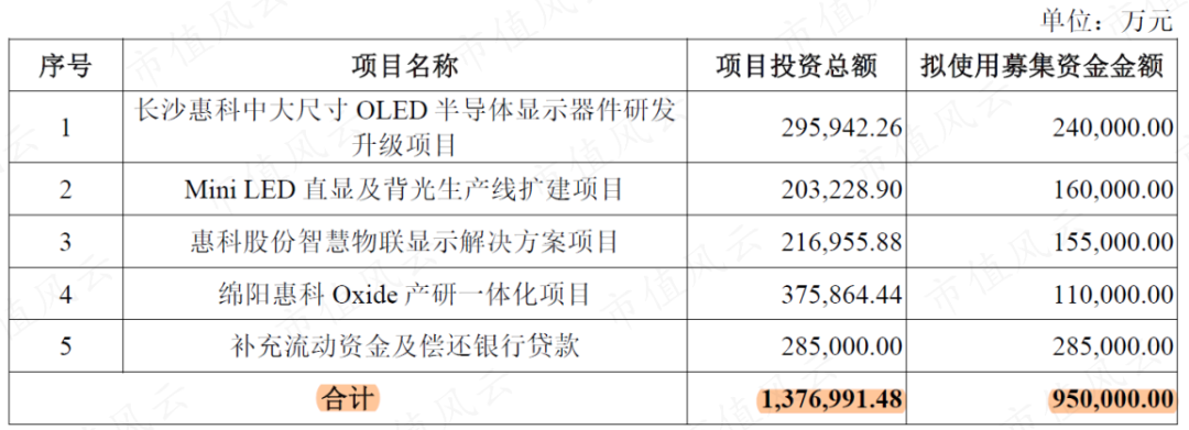上文曾提到,惠科股份此次IPO打算募資95億元。