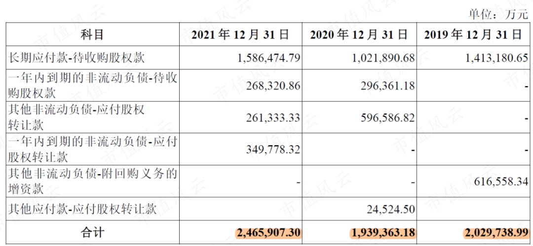 其中,計入長期應(yīng)付款的待收購股權(quán)款,均是約定了固定收購利率、到期還本付息的子公司股東出資。