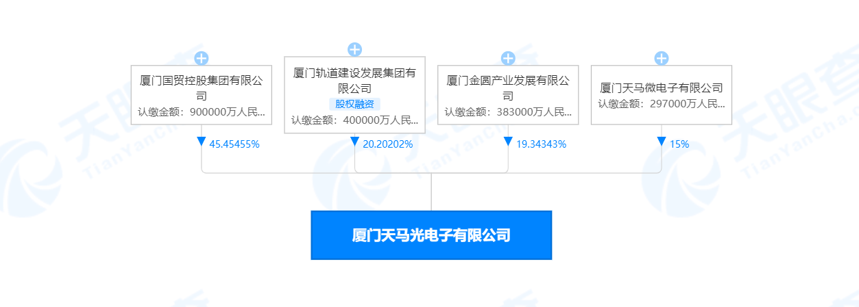股權穿透顯示,該公司由廈門國貿控股集團有限公司、深天馬A全資子公司廈門天馬微電子有限公司等共同持股。